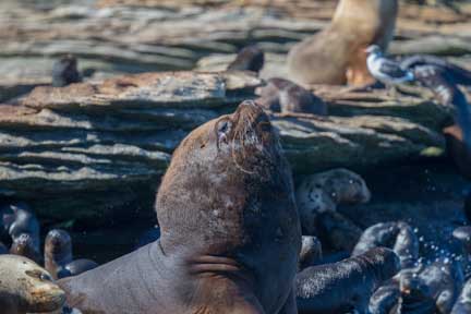 The Southern Sea Lions in the Falklands are huge. When you look at the adult males you can see what looks like a mane on their huge heads, which is why they are called lions.