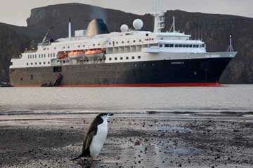 Our first stop was Deception Island. The red flag denotes a walking path.