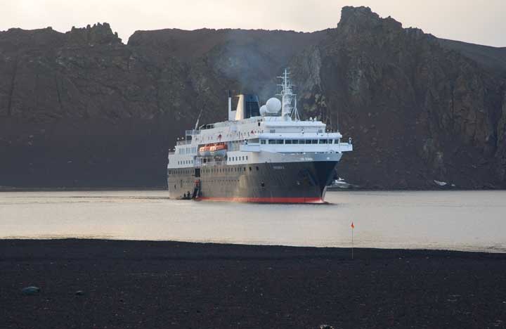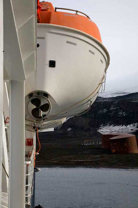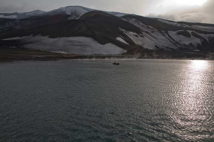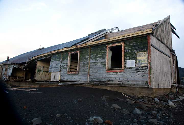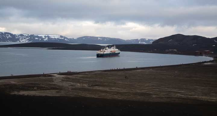 As the anchor was dropped we could see a house and fuel containers for a whaling station and a British research station. They were here until 1968 when a mud and debris flow (called a lahaar) destroyed most of it.