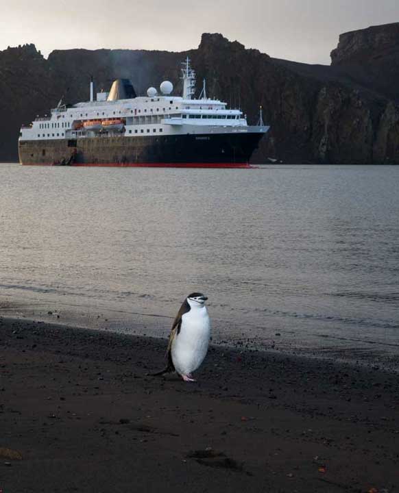 Our Expedition Team went first to make sure the coast was clear from all those penguin gangs ready to mug us. You can visualize the steam from the underground thermals at the waters edge.