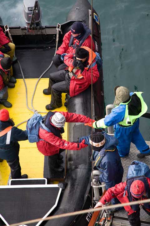 There is a specific procedure for entering and exiting the zodiak, all under the watchful eye of Jannie (he’s that mean- looking guy at the top of the gangplank). If you didn’t do it exactly to protocol you would get an earful from Jannie- don’t fool with him!