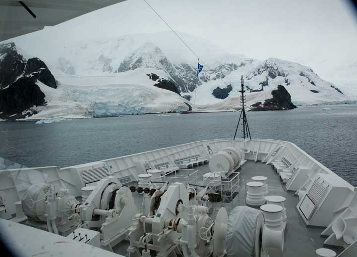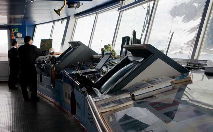 We had a chance to go on the bridge and watch how they navigated past icebergs