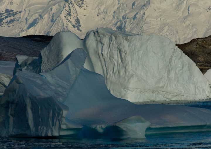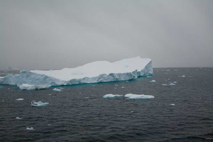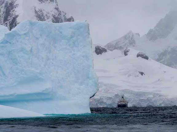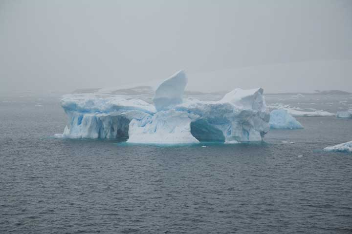 Even though our ship is further away than this blue iceberg and seems small because of this distance, you can get an idea of how big an iceberg gets in relation to our ship