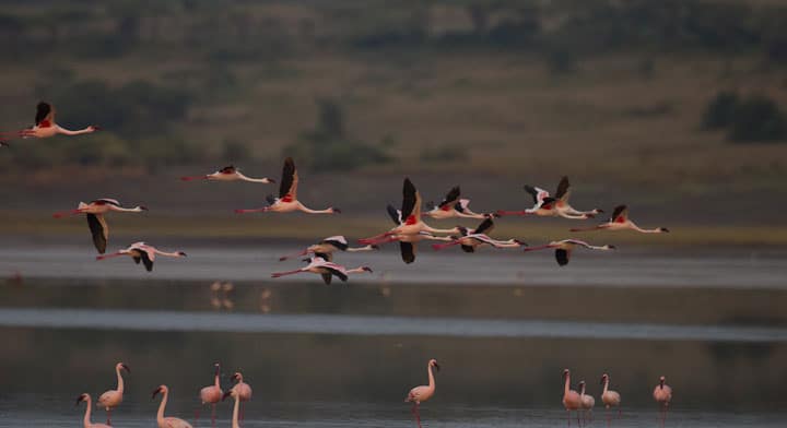 Flamingo heaven at Lake Ndutu