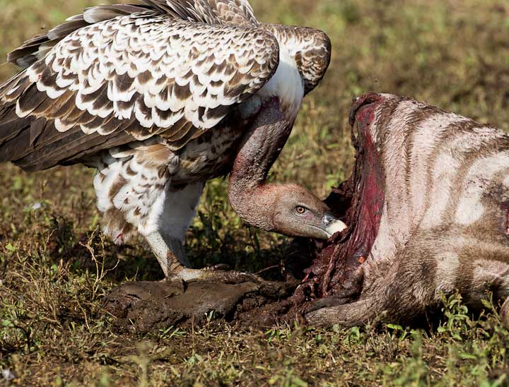 Click on the picture below to watch short video of how intensely they feed alongside a hyenaVultures eating