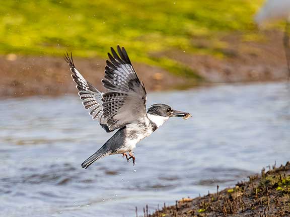 One of my favorite birds to photograph is the kingfisher. They are feisty, colorful, and highly entertaining with their antics and fishing style. This post has photos of kingfisher in action, the only way to photograph them!