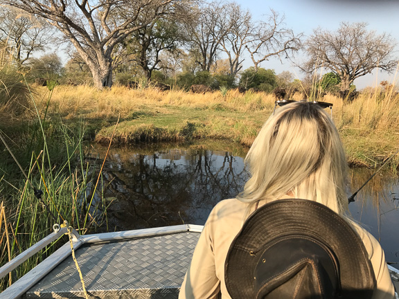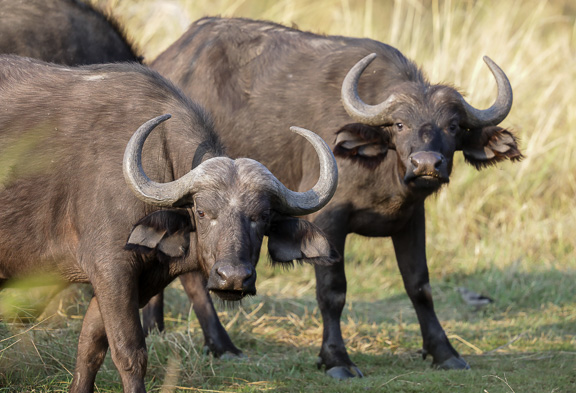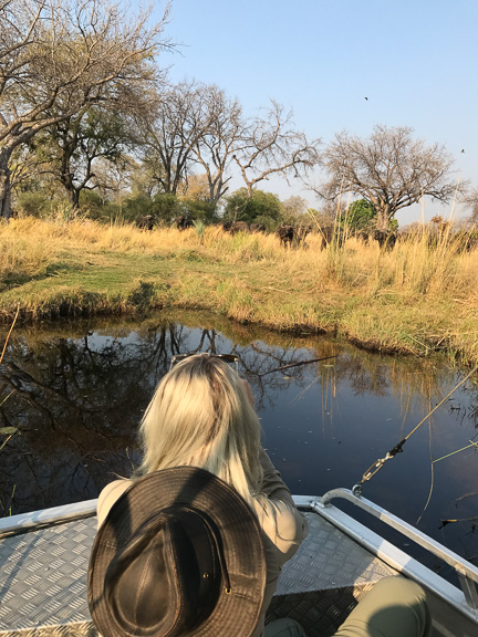 We took the powerboats to an island for a walking tour with our guide. We encountered a herd of Cape Buffalo at our landing site, and had to wait from them to pass. This gave us an opportunity to photograph them up close, while they were calm (although inquisitive about us based on their stares), and from the safety of our boats.