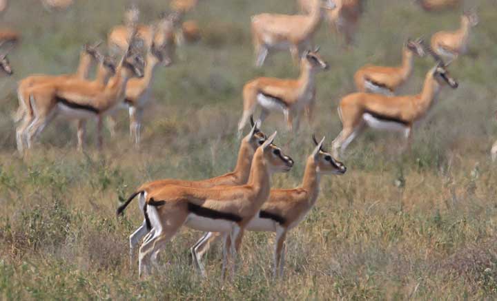 The Thomson’s gazelle are highly alerted to her presence