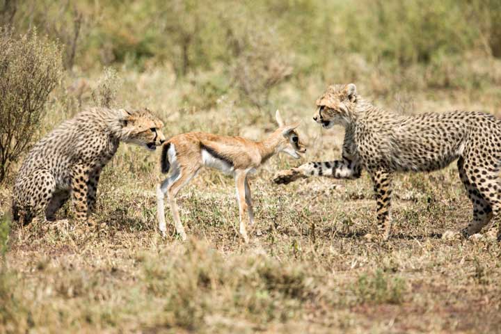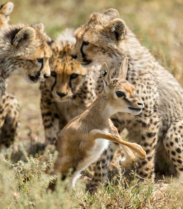 Imagine our surprise when one of the guides radioed that the adult gazelle the mother cheetah had killed was gone. It turns out that it was never killed, just stunned, because the mother cheetah was distracted by her cubs and what they were doing.  While all of us, including the mother cheetah, were watching the cubs, the adult gazelle got its wits and walked away. It was one major stroke of luck for a hapless gazelle that a few minutes prior had its throat in a cheetahs mouth!