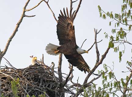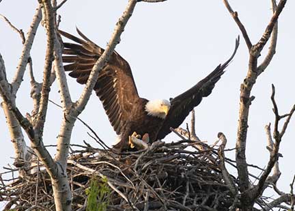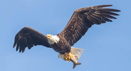 The male eagle returning with a lake trout for delivery to the hungry chicks