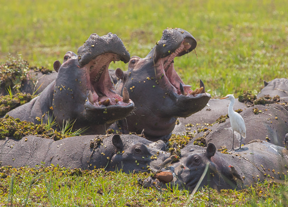 You don’t want to get between them and their escape route, a bull’s territory, or females with their young. From the stories I heard from guides and other guests, the biggest danger is when you are canoeing in the water and don’t see them, when all of a sudden one emerges near or under your canoe. The hippo panics and attacks the canoe, usually tipping it over, and possibly biting the occupants.