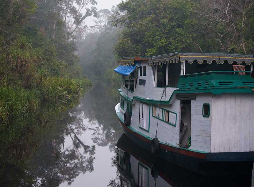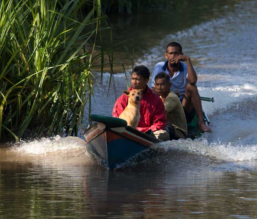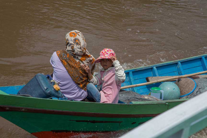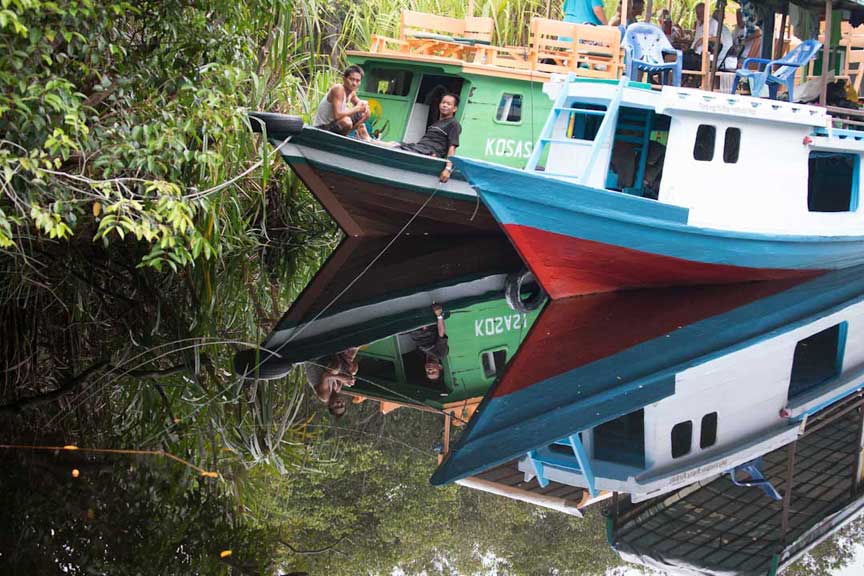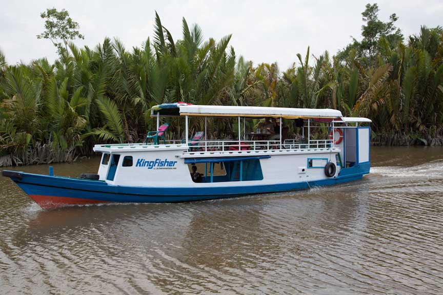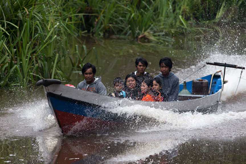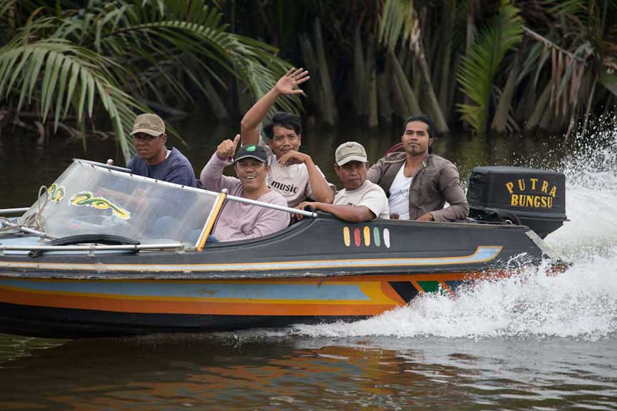 Many different kinds of powerboats navigate the Sekonyer as they move supplies and people back and forth to Kumai