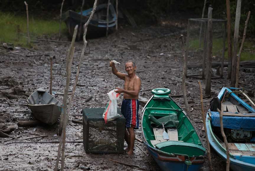 Some people still live along the river and eke out a basic living