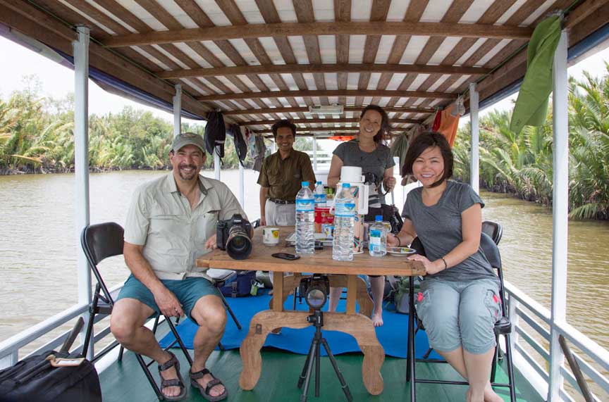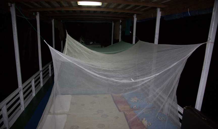 You sleep on the klotok on comfortable mattresses with mosquito netting. Even though we chatted away, and even sometimes played cards, most people went to bed early since you would be up early as the gibbons did their morning serenade.