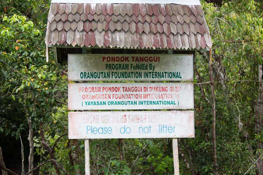Before you get to your final destination of Camp Leakey there are several stops along the way at feeding stations for the semi-wild orangutans. They feed the orangutans (and other critters that show up) a combination of milk, banana, and pineapple. These animals are having a hard time finding adequate nutrition in the devastated rainforest, so this supplemental feeding is highly beneficial to them.