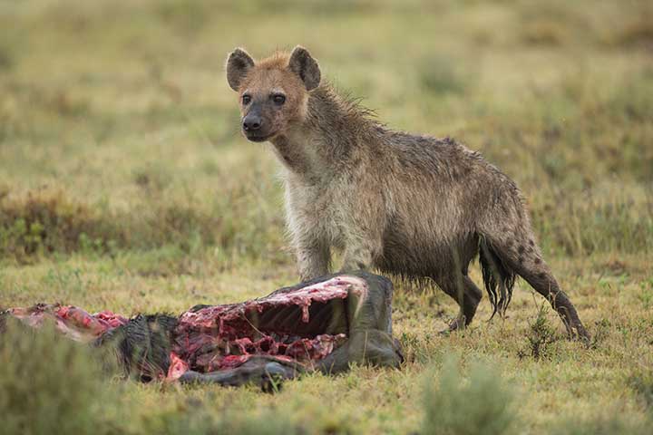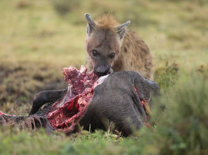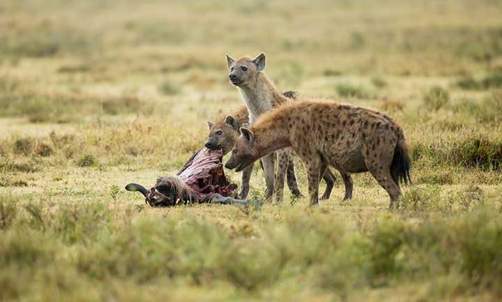 A clan of hyena were feasting on the significant remains of a wildebeest
