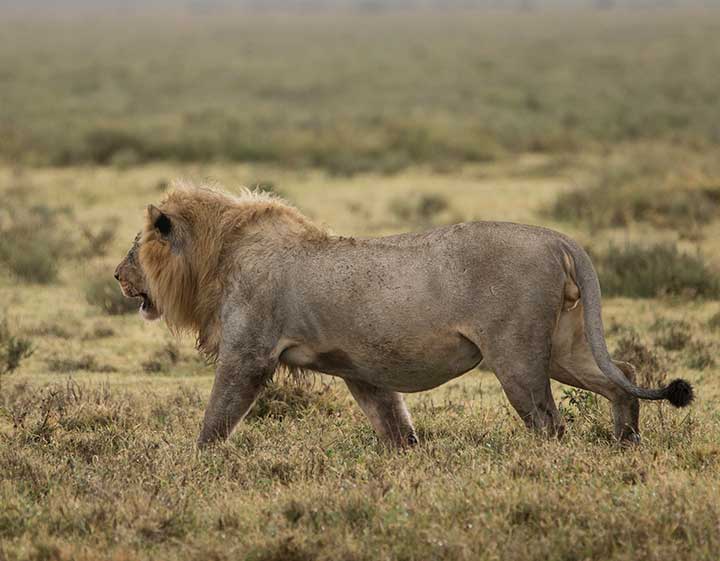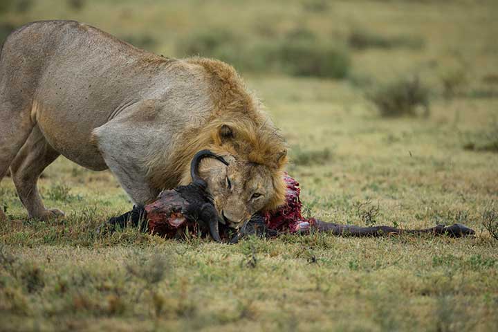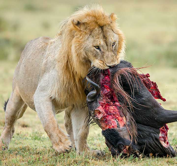 As it turns out, a small pride of male lions had killed the wildebeest earlier and already feasted. They were lounging about 100 yards away after gorging on the wildebeest. They left their kill to the hyenas since they could not eat any more.