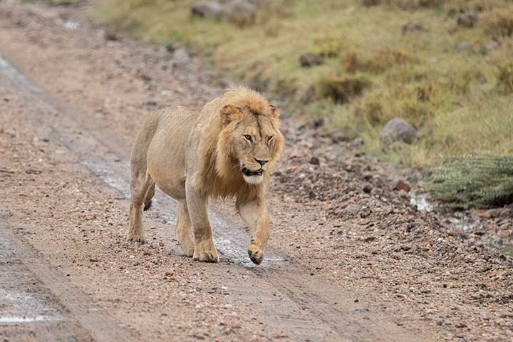 One of the males decided that he did not want the hyenas eating his meal so he returned, walking right down the middle of the road