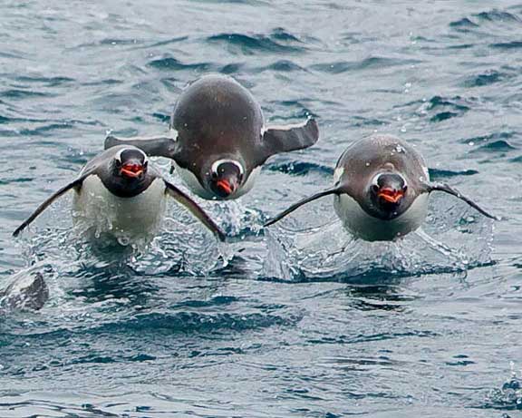 As we got near the Antarctic peninsula we got our first taste of penguins. I captured these porpoising penguins from the mother ship by shutting my eyes, pushing the shutter button, and then keeping my fingers crossed. For as comical as they are when they waddle around on land they move with lightning speed in the water.