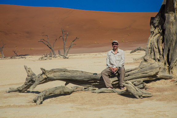 After a five hour drive from Windhoek we saw our first sand dunes in Sossusvlei. Of course I had to climb one and leave my mark. After this first dune we spent several days in the Namib-Naukluft National Park exploring other dunes. As we drove around Frank practiced his ‘woodchuck”.