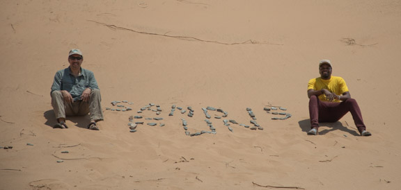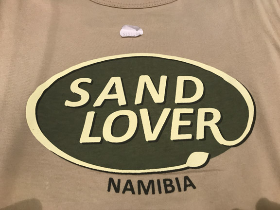 Even the t-shirts emphasize the sand in Namibia. In case you missed it, this is a spoof on the insignia for Land Rover cars.