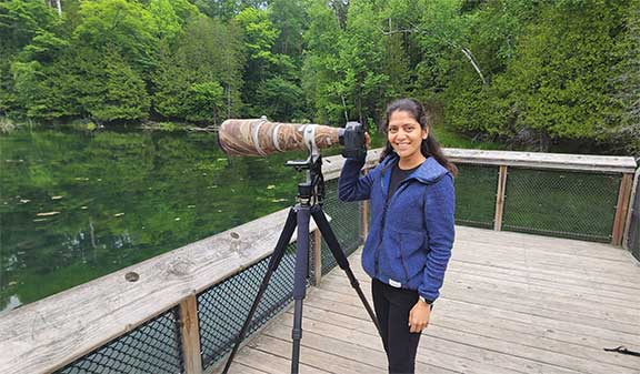 This is a Canon 500mm mounted on a Wimberly tripod. The camera is the mirrorless Canon R3. My assistant Mohini is learning how to set it up for me.