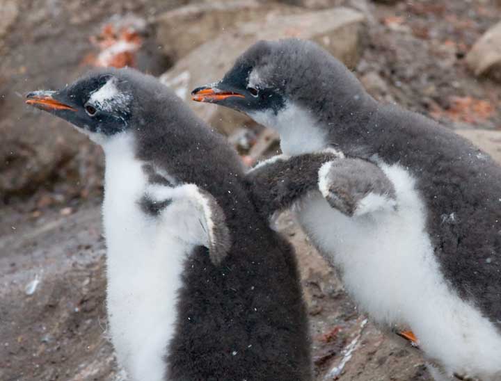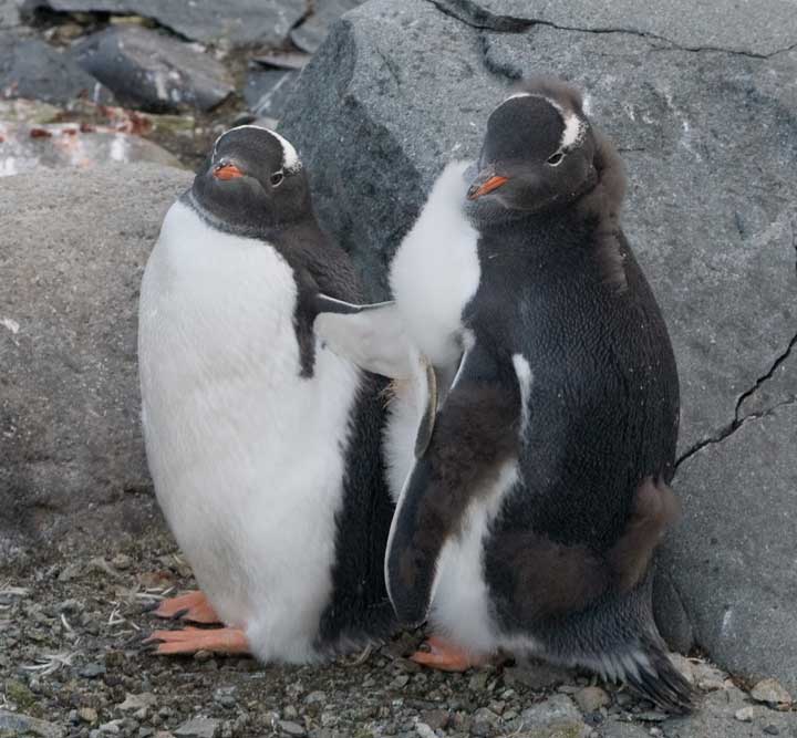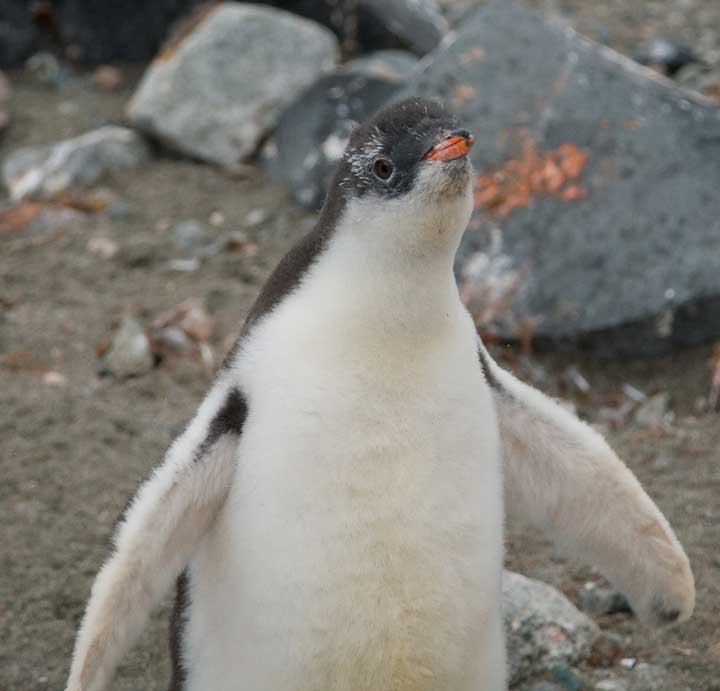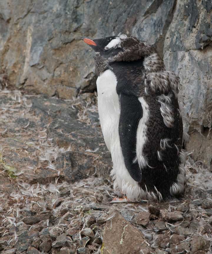 The rules state we must stay at least 5 meters away from them. Many of the young are going through what is termed a “catastrophic molt”, which is a stressful time for them and we do not need to add more stress. You will see pictures of the young penguins molting in this page. Penguins do do not have the same rules as us humanoids though, and will oftentimes come right up to you.