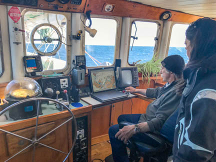 Jerome on his bridge, plotting our course around these islands