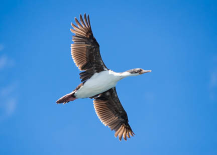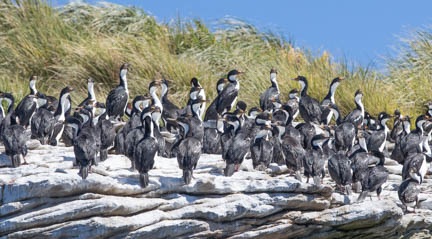 We encountered blue skies, calm seas, and plenty of wildlife on the ride to New Island. We saw Imperial (King) cormorants, peregrine falcons, petrels, and more dolphins.
