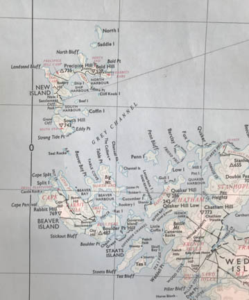 New Island, our final destination at the end of this day, is at the top left. Below that are the islands around Weddell Island, where we spent the day sailing