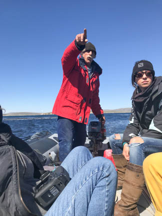 Georgina showing off the latest in hair do’s as we motored past islands with large numbers of birds