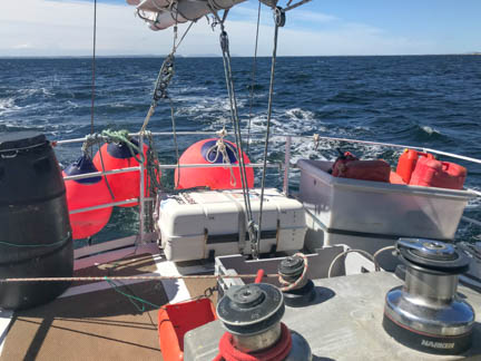 Jerome raised the sail for part of our trip, and we enjoyed the experience of sailing the southern ocean on a beautiful day