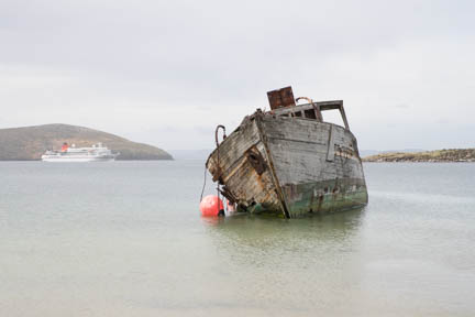 It is easy to find because a shipwreck is in the water near the museum. Notice the small cruise boat in the distance? Tourists from this boat coming to the island for a short visit are the main source of income. They are not allowed to stay on the island.