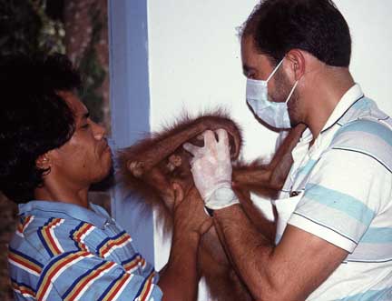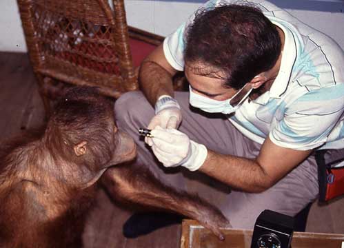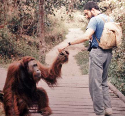 In 1991 Dr. P went on a research project studying orangutans in Borneo. Orang-utan means “man of the forest”. Please note there is no “G” at the end of orangutan, although most people incorrectly pronounce the word as if there is one.