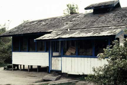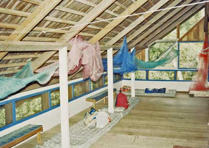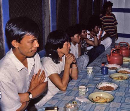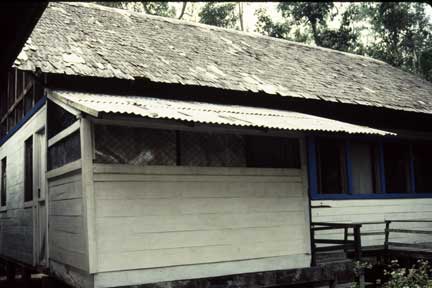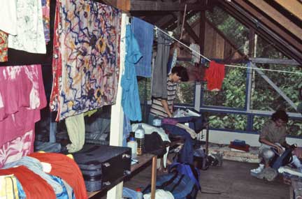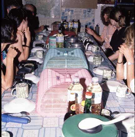 Evening meals were a social occasion. There were researchers from around the world studying primates in their native habitat. Of course you know by now what is inside the green bucket in the front of the photo.