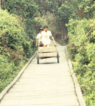 If one grabbed you it was necessary to bribe your way our of their grasp by giving them gum, or believe it or not, bar soap to chew on. Here is Dr. P paying the toll to get off the bridge.