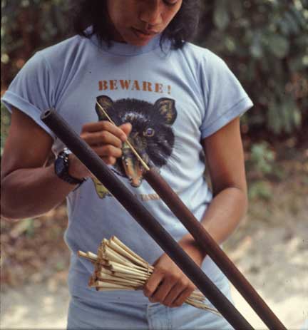 The next morning before our return boat arrived they taught us how to use the spears to shoot arrows. We were not very good.