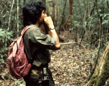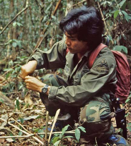 This interesting character “hung around” our quarters often. This is a white faced Gibbon. We would wake up to Gibbon’s hooting early in the AM. They looked cute, but we were emphatically warned not to attempt to touch them- they move like lightning and will bite visciously.